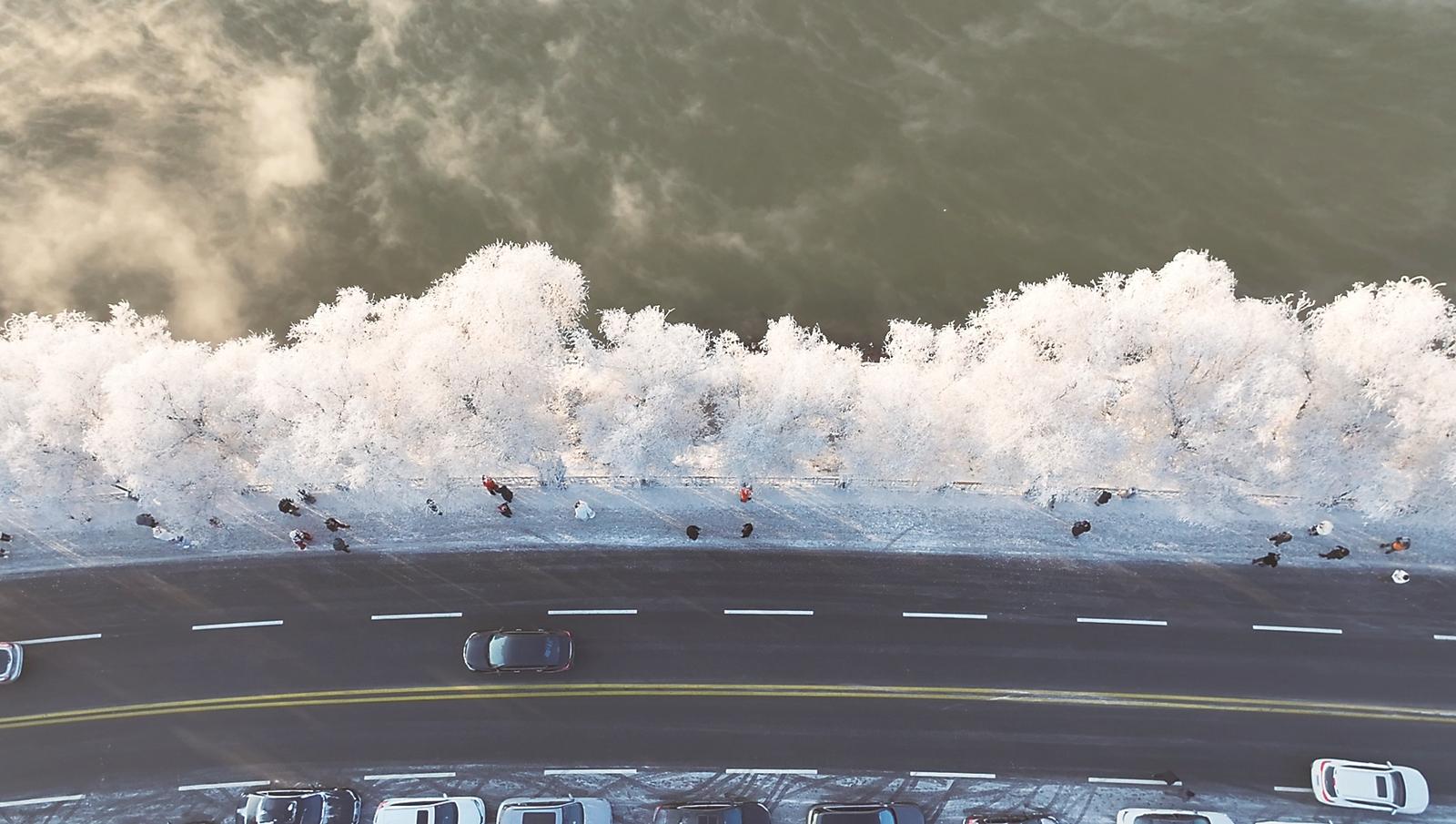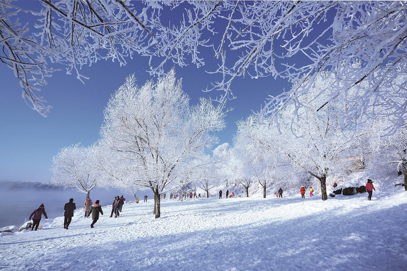 晨光明亮·,小雾凇岛上洁白的雾凇与松花江水相映生辉。 (本栏图片均为资料图片)