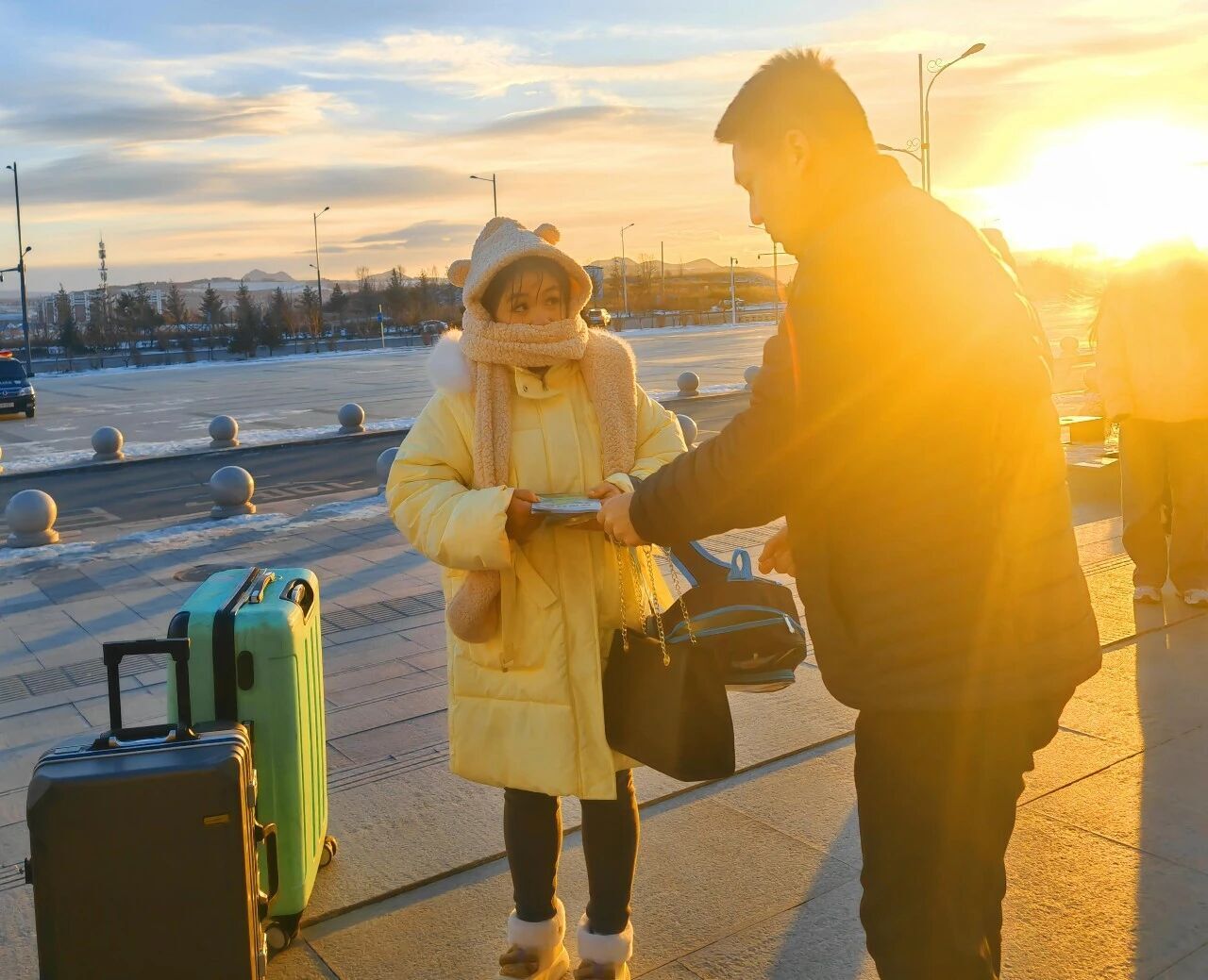 在高铁站出站口,志愿者们不畏严寒,手持环保宣传册,向来往旅客耐心讲解环保知识、文明出行规范及延边冰雪旅游注意事项。同时,志愿者们化身“文明引导人”,协助维护秩序,主动为旅客提供导乘咨询等贴心服务,在寒冬中为旅客送去温暖,展现了生态环保铁军良好的文明形象。