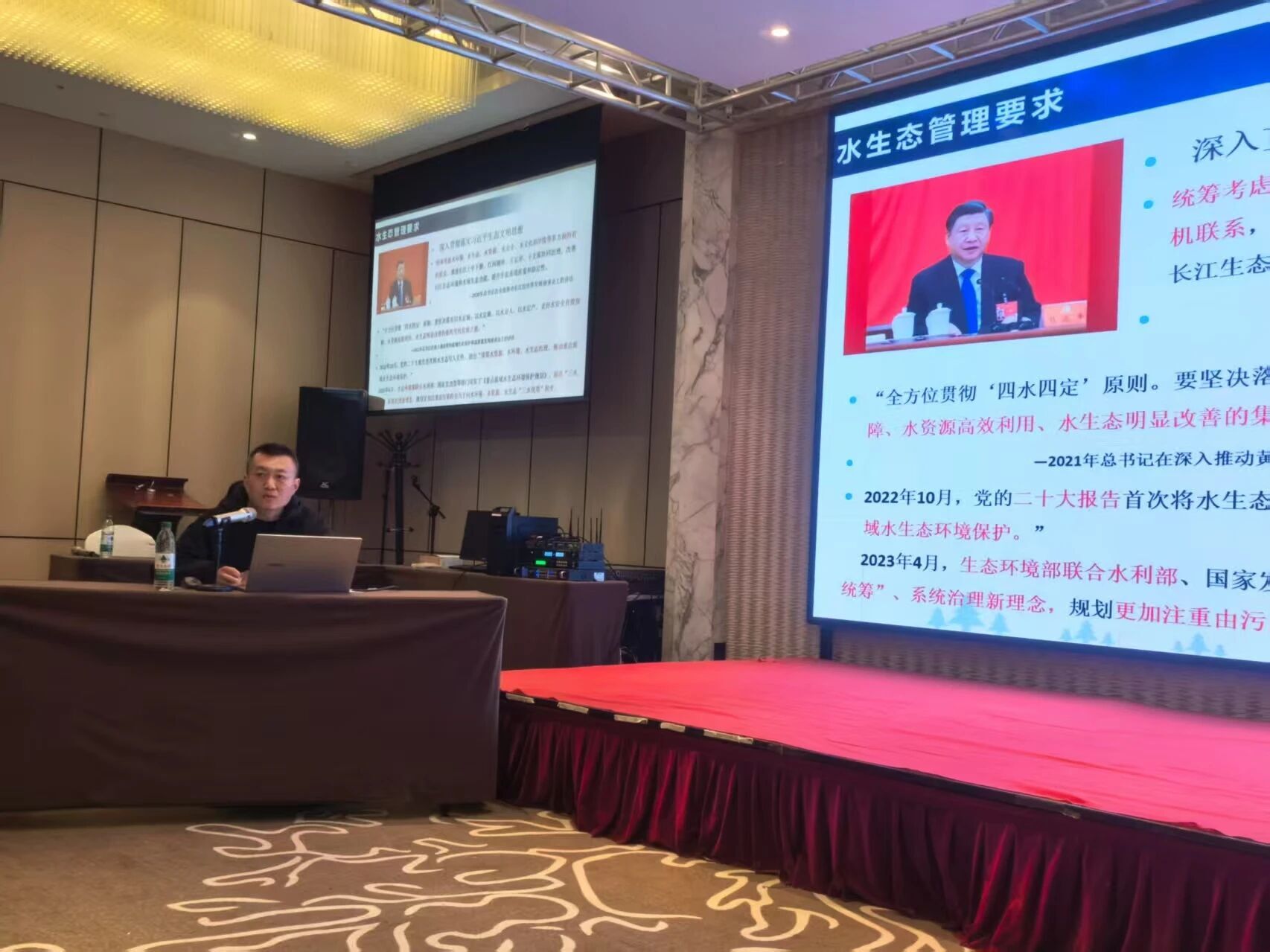 在理论练兵环节,省中心特邀业内资深专家进行专题授课。专家围绕采样生境选择、水生生物采样技术要点等内容,深入讲解关键技术规范,授课内容翔实、案例生动,有效夯实了学员们的理论基础。