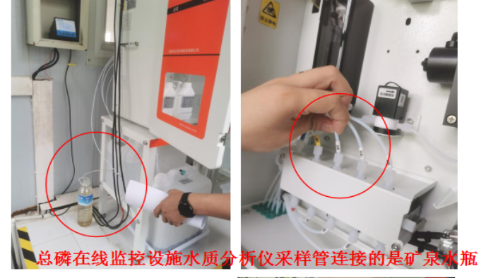 2024年7月12日14时,辽源市生态环境局与公安部门执法工作人员到达现场,经查,东辽县市政设施维护服务中心位于辽源市东辽县白泉镇德忠村5组,该单位为辽源市水环境重点排污单位,为实行排污许可重点管理的单位。东辽县市政设施维护服务中心委托吉林省某污水处理有限公司负责污水处理实际运营,检查时企业污水处理设施正常运行,在线自动监控站房内有4台(COD、氨氮、总磷、总氮)水污染源在线自动监控设施正常运行,监控数据正常上传终端平台(每间隔2小时上传一次监测数据),4台在线自动监控设施由吉林省某环境工程有限公司负责日常运行维护。检查过程中发现氨氮、总磷在线自动监控设备采样管未连接污水排放口取水装置,采样管从中间断开直接插入设备旁边矿泉水瓶内,通过查看设备内部,自动监控设备分析做样时,分析的水样为通过采样管抽取矿泉水瓶内的水样,并非实际污水处理厂排放口水样。