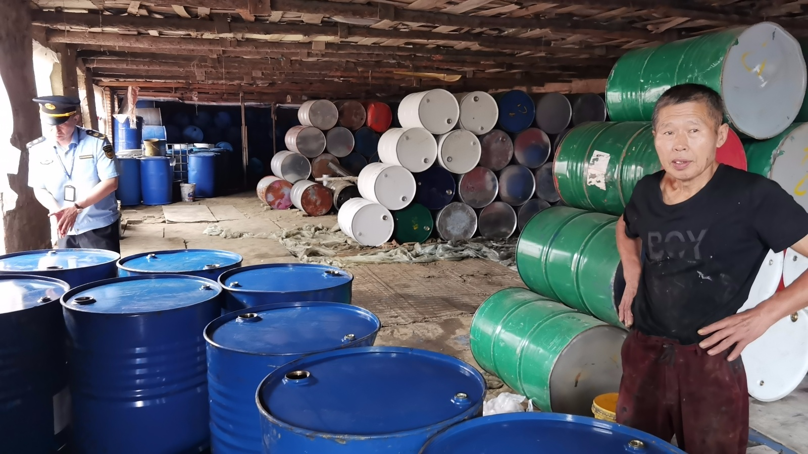 排查中发现在辖区内一处库房内存有大量不同材质、不同型号曾装过化工原料的空桶。经调查,李某擅自将购买回来的554个空桶进行擦洗后将废水倾倒在库房内无防渗的水沟内。因案情重大,防止证据灭失,执法人员立即采取措施,依法对涉案仓库进行了查封,并联系有资质的监测单位对水沟内废水进行了采样。监测结果显示废水中含有有毒有害物质。昌邑区分局第一时间将案件线索移交公安部门进行侦办,目前该案件正在办理中。