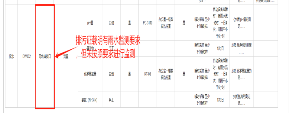 某排污单位排污许可证中,废水总排口未明确“流量、化学需氧量、氨氮”自动监测要求,但根据《排污单位自行监测技术指南电子工业》(HJ1253-2022)要求,“流量、化学需氧量、氨氮”应为自动监测,排污单位实际已安装“流量、化学需氧量”自动监测设备(未与生态环境主管部门的监控设备联网),未安装氨氮自动监测设备。