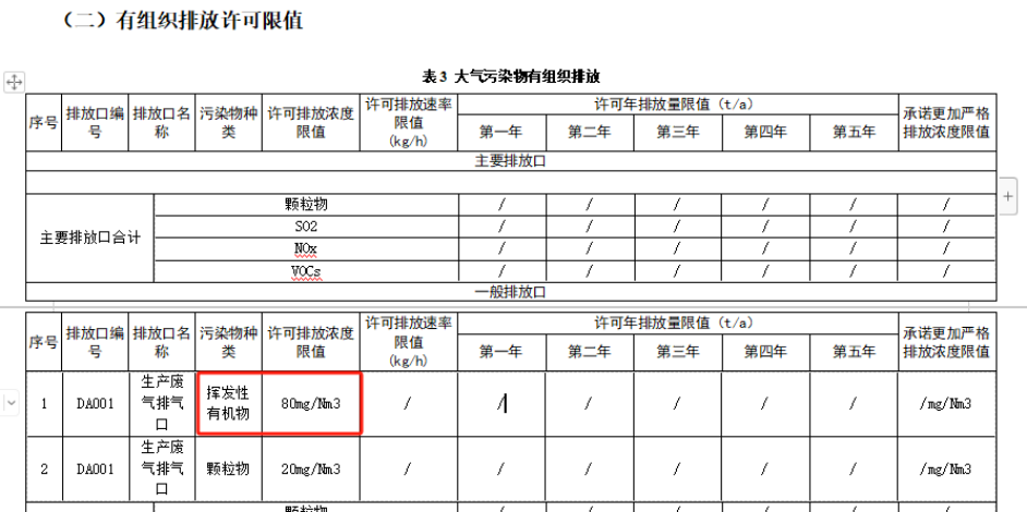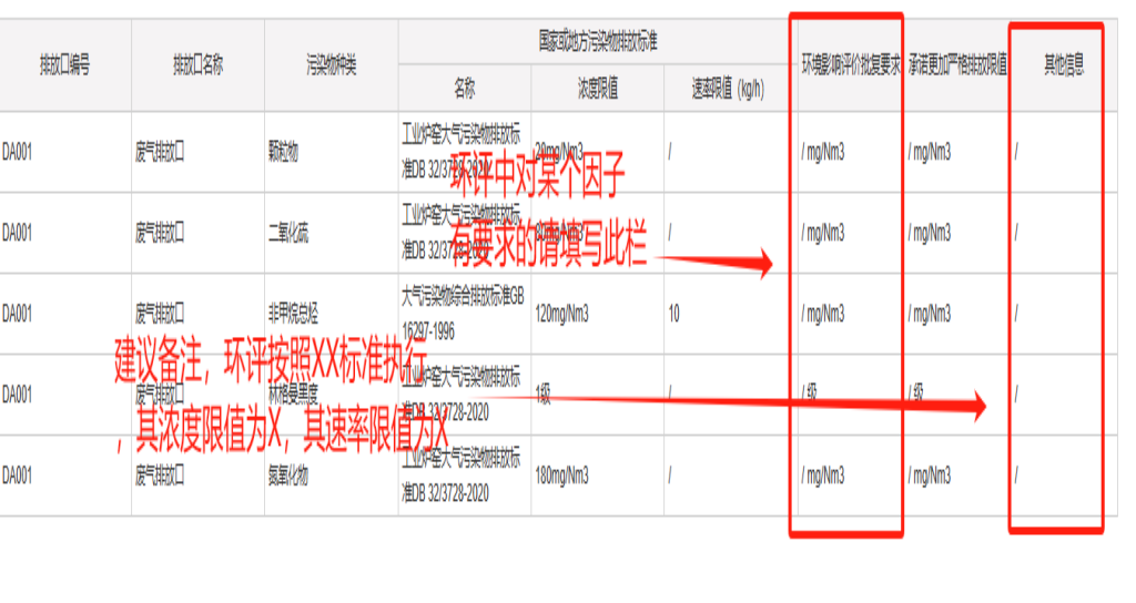 ①废气污染物排放执行标准信息表补充填报环境影响评价批复要求。
