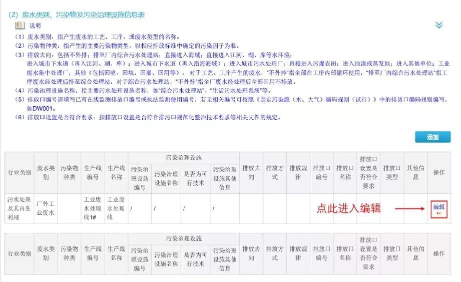 | 11 | 水处理行业,“废水产治排信息”表格行业类别无法选择“D462” | 水处理行业,废水产治排信息表格无需“添加”,直接编辑即可。