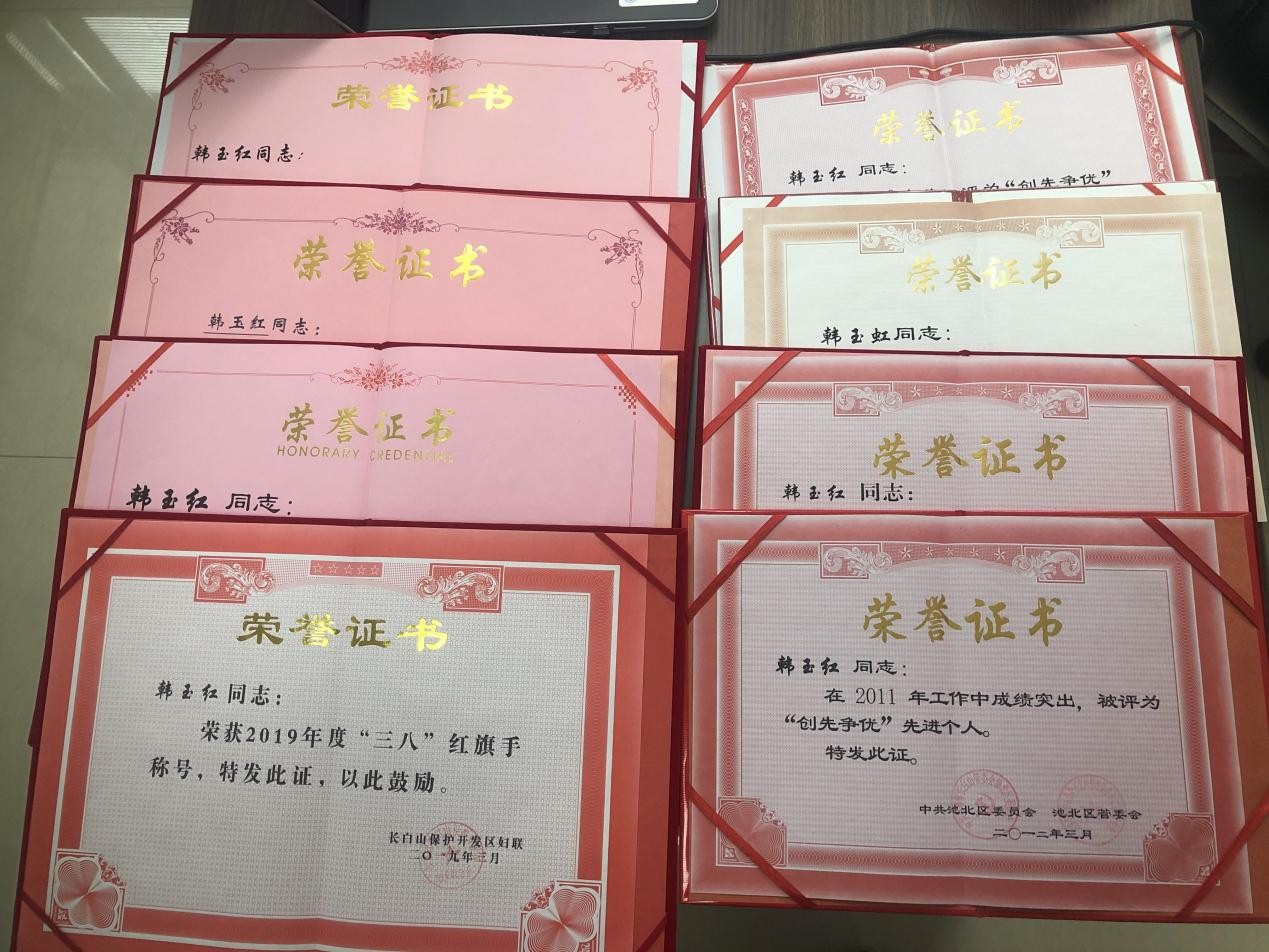2018年初,她由于意外,造成右肩骨骨折,在长春做了手术。常言说“伤筋动骨一百天”,但她牵挂单位的工作,仅在家休息了将近一个月,绑着绷带就到单位来上班,毅然坚守在自己的岗位上。白天,深入现场,协调处理各种问题,晚上又研究文字材料,经常工作到深夜。肩膀疼痛了,就站起来活动一下,疼痛难忍时,就用右手放在墙面上辅助活动。她这种身先士卒、爱岗敬业的精神得到了领导和同事的一致好评。但由于恢复治疗和康复运动没有跟上,她的右肩一直没有完全康复,运动功能有障碍,肌肉明显萎缩。在2020年初开展疫情防控期间,韩玉红放弃照顾耄耋之年的父母,用自己的行动诠释着习近平总书记“疫情就是命令,防控就是责任”使命担当。