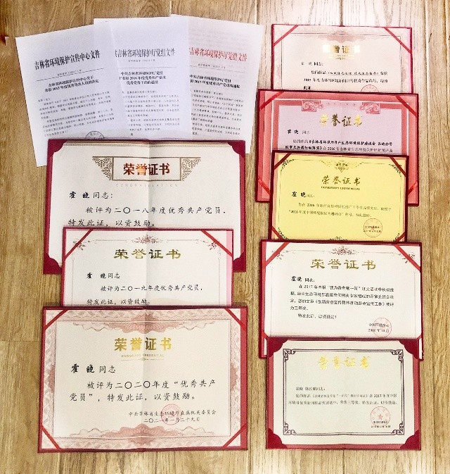 霍晓同志勇于担当与敬业表现得到了生态环境部、新葡京博彩官网 的充分认可。2020年,霍晓荣获国务院第二次全国污染源普查表现突出个人。2015年荣获吉林省环境保护宣传中心优秀工作人员,2016年度、2017年度、2018年度、2019年度、2020年度连续5年荣获度吉林省环境保护厅优秀共产党员称号。
