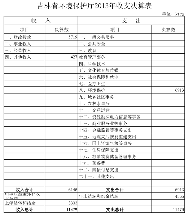 吉林省环境保护厅2013年收支决算表