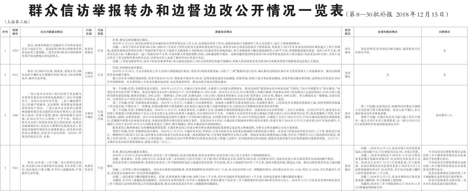 吉林省群众信访举报转办和边督边改公开情况一览表(第8—30批补报 2018年12月15日)