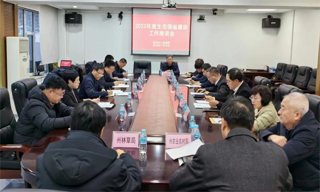 现场调研后督导帮扶工作组召开了生态强省建设工作座谈会,延边州政府副秘书长王晓东同志汇报了相关情况。帮扶工作组听取了我州各相关部门关于生态强省建设成效指标完成情况和重点任务推进情况的汇报,就生态强省建设工作推进过程中的具体情况和困难,进行了深入交流。