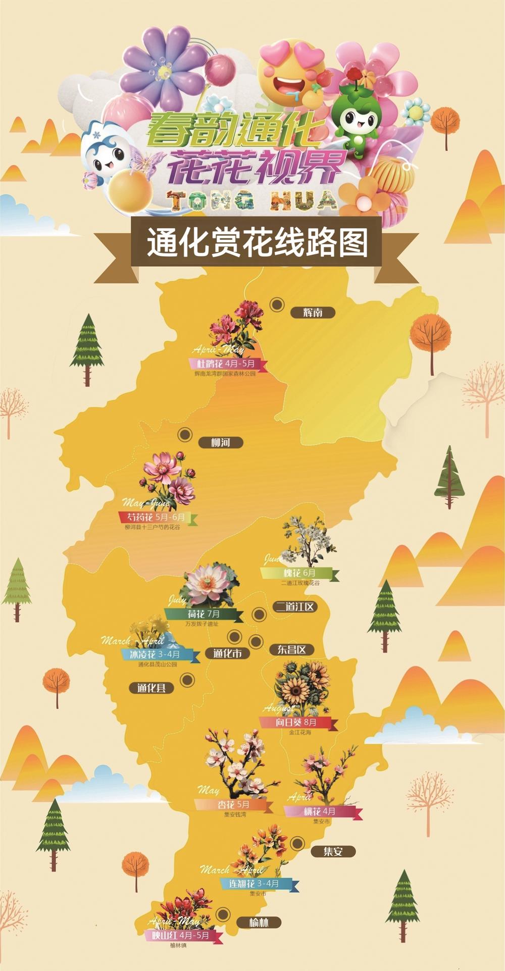 春韵通化,千山滴翠万物新,百花灼灼醉游人。