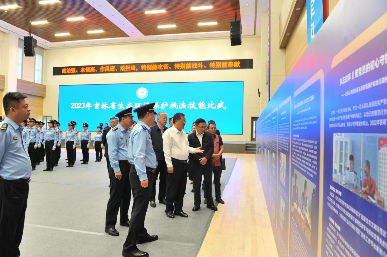 活动启动仪式开始前,各代表队参观了“一图一故事”“我的帮扶故事”优秀事迹展板,一个个真实的执法故事,全面展现吉林生态环境保护铁军主力军风采。