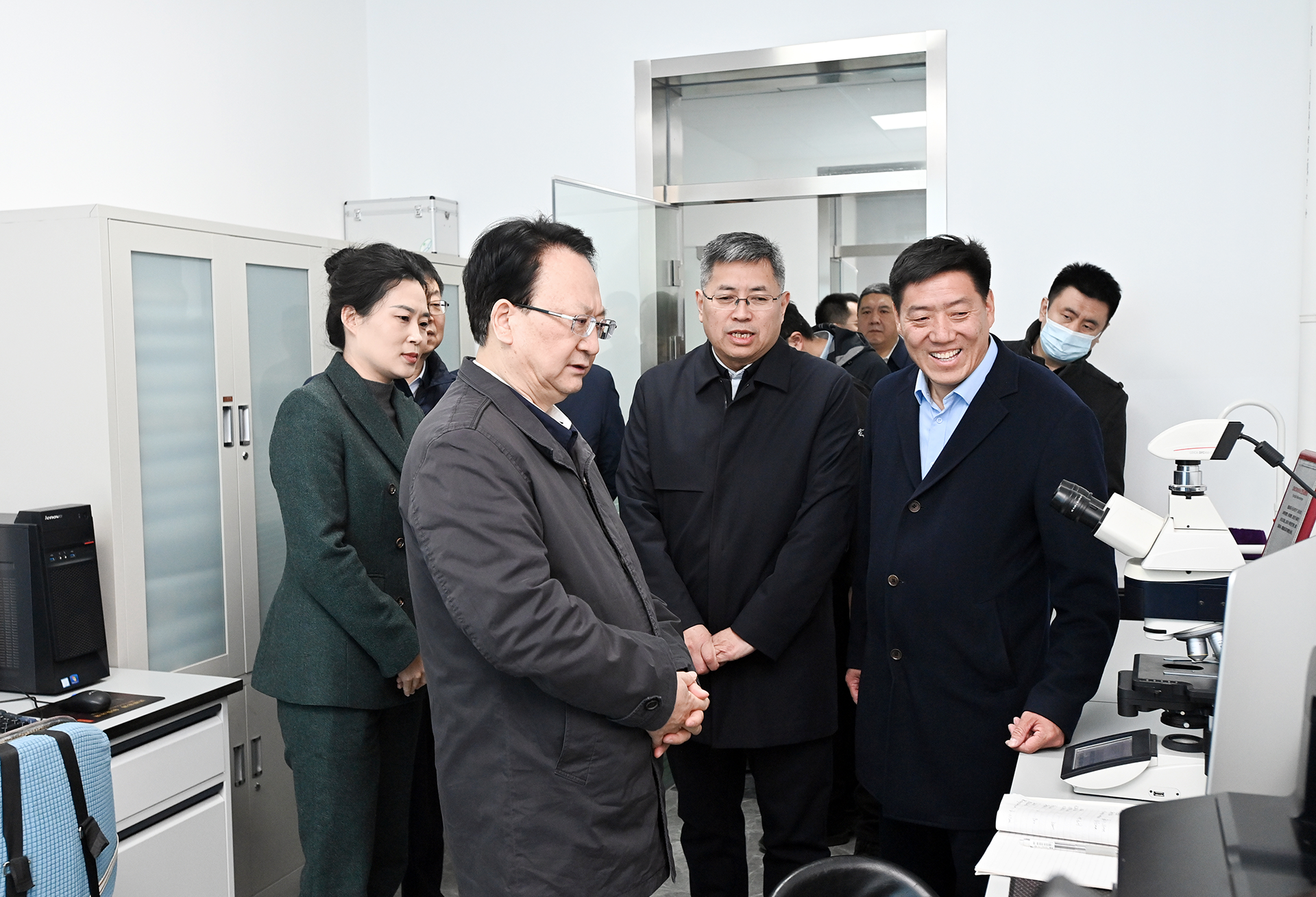 3月27日,省委书记景俊海到省生态环境监测中心调研,在光谱、色谱、生物等实验室详细了解生态环境检验检测分析流程。
