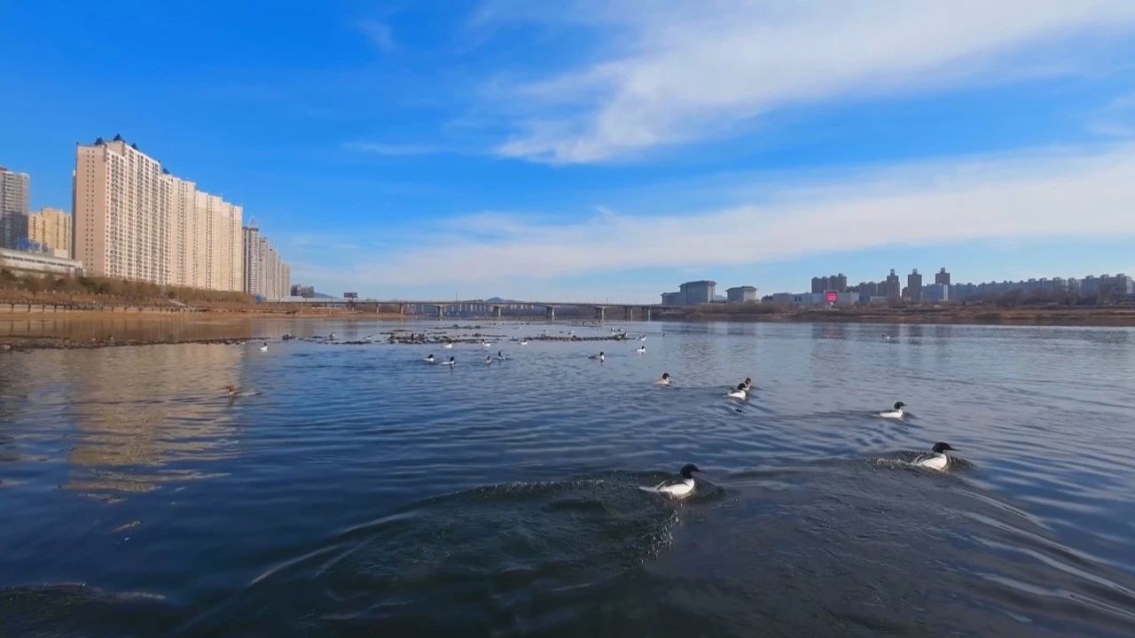 松花江水系在吉林省总计有62个国控河流断面,优良水体占比超过80%。因此素有“生态试纸”头衔的中华秋沙鸭,今年有600只选择在吉林哺育下一代,比2018年翻了一倍还多,接近全国种群数量的一半。
