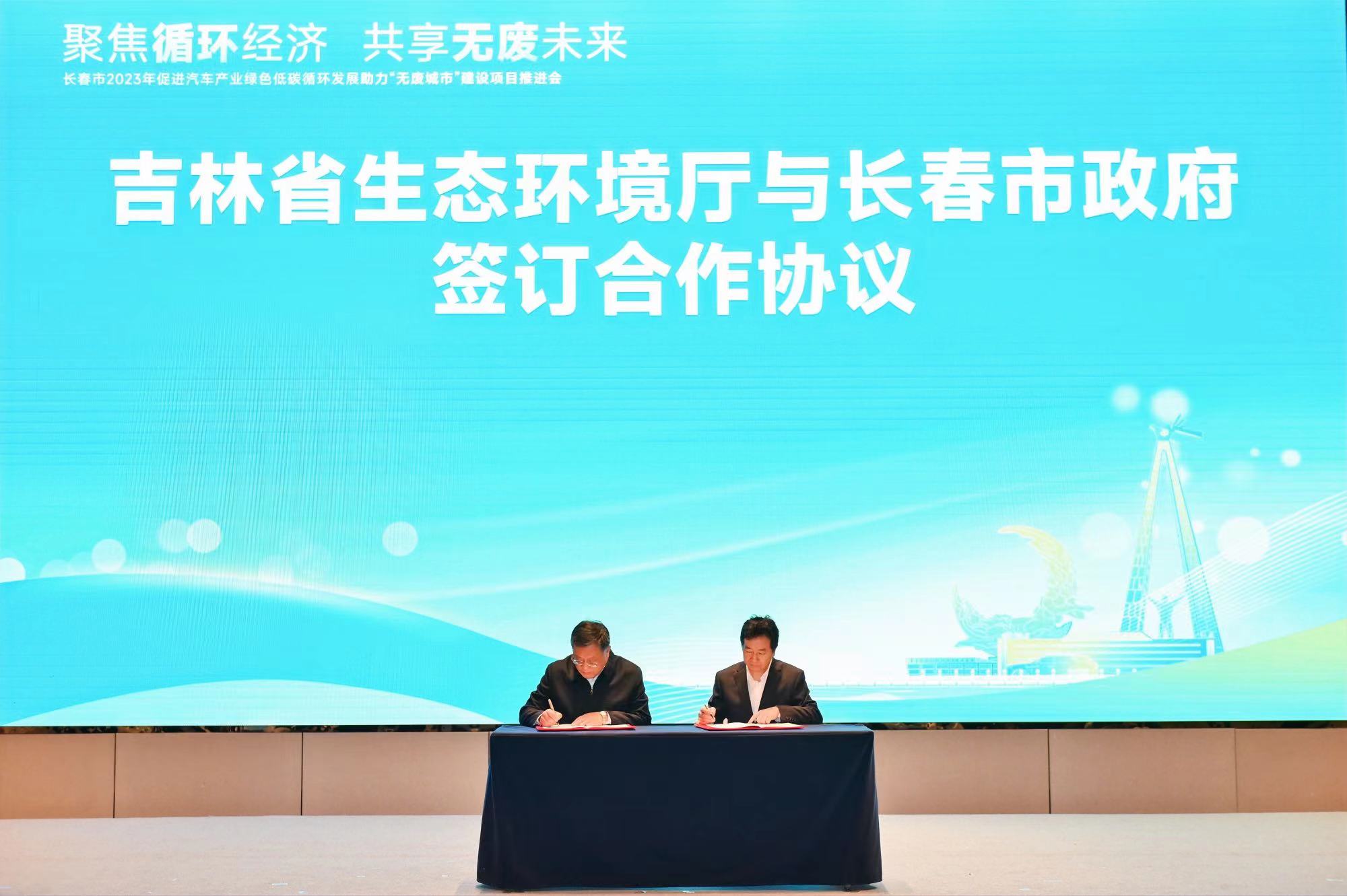 为加快推进长春市“无废城市”建设,2023年11月29日,在长春市人民政府和新葡京博彩官网 共同主办的“促进汽车产业绿色低碳循环发展,助力‘无废城市’建设项目推进会”上,新葡京博彩官网 厅长张旗威与长春市人民政府副市长杨少清代表双方签署了《加快推进长春市“无废城市”建设 打造典型示范的合作协议》。