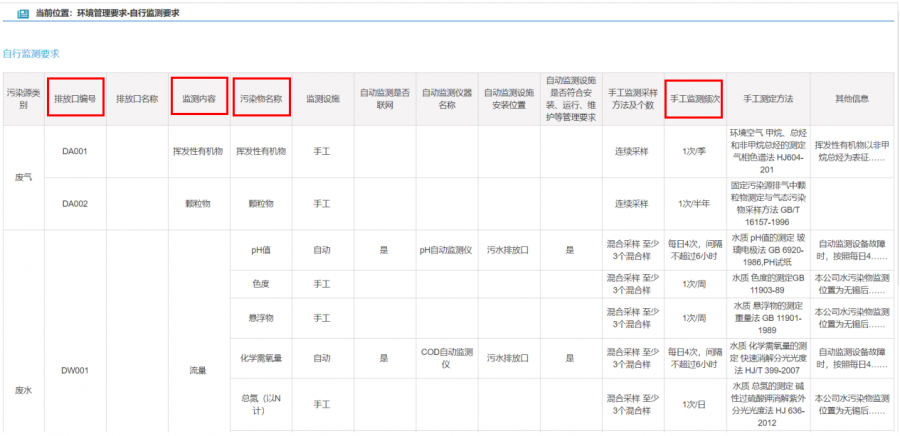 自行监测要求信息