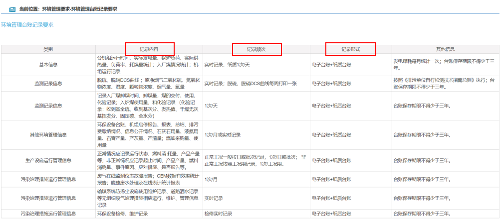 环境管理台账记录要求信息